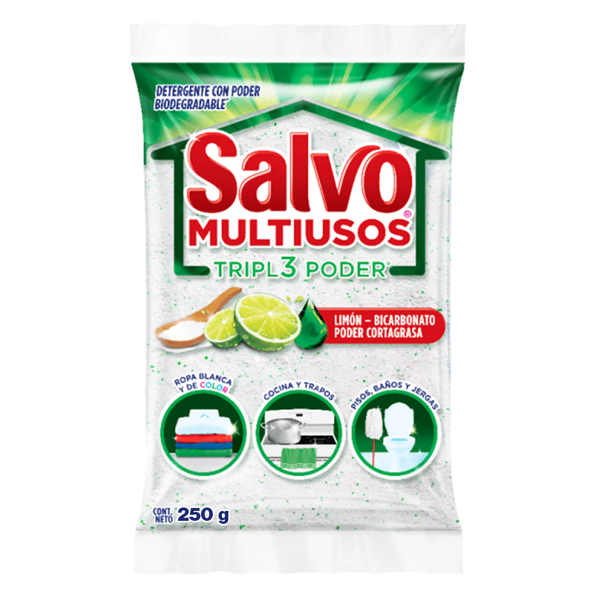 Detergente Para Trastes, Salvo Multiusos. En Una Presentación Especial De 250 Gramos, . Ideal Para La Limpieza De Tu Hogar, Con Poder Corta Grasa. Detergente Biodegradable.