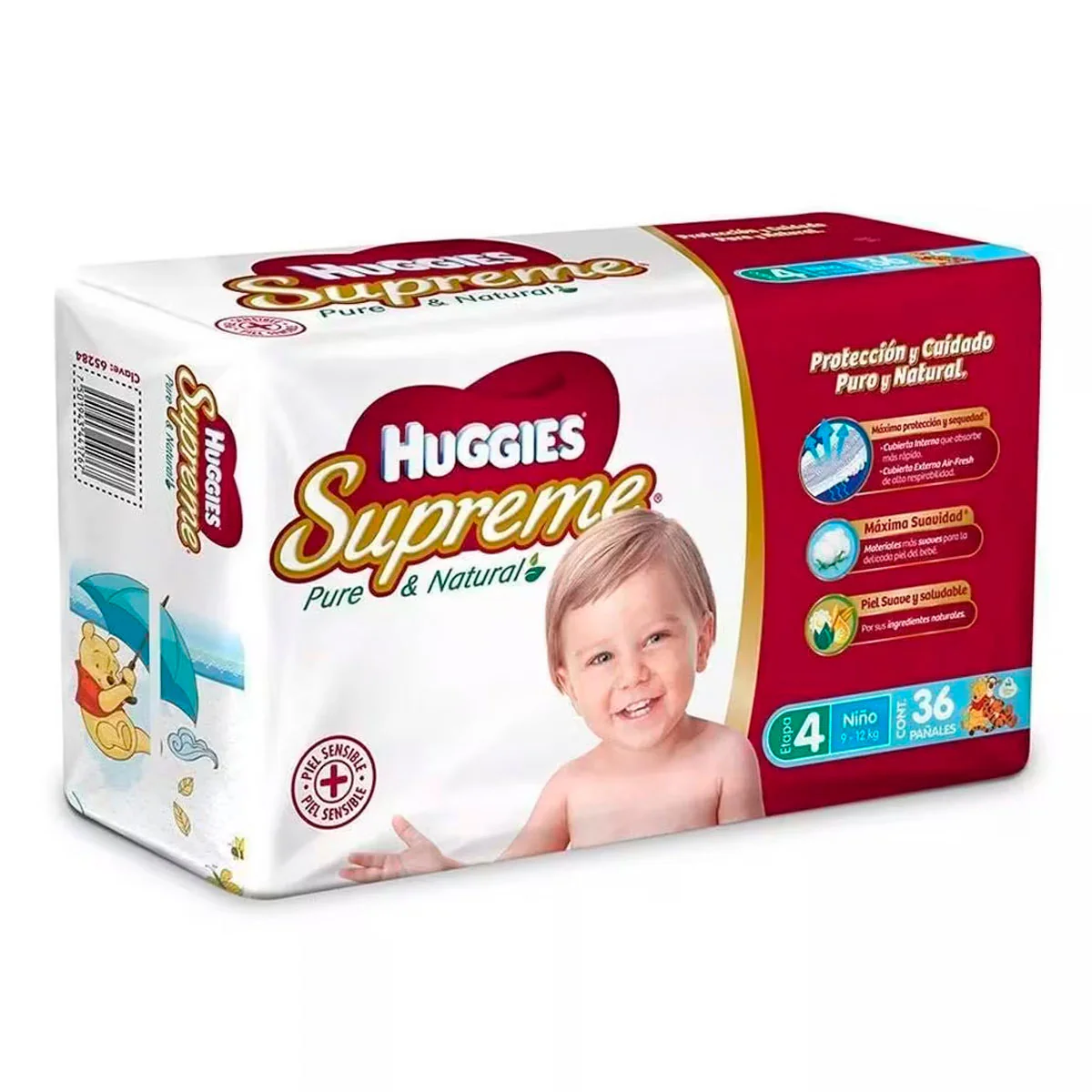 Pañales Para Bebé Huggies Supreme, Para Niño. Presentación De 36 Piezas. Protección Para Tu Bebé, Etapa De 4 A 9 Meses, Peso 12 Kg. Interior Acolchonado Dermo Protect. De Uso Fácil.