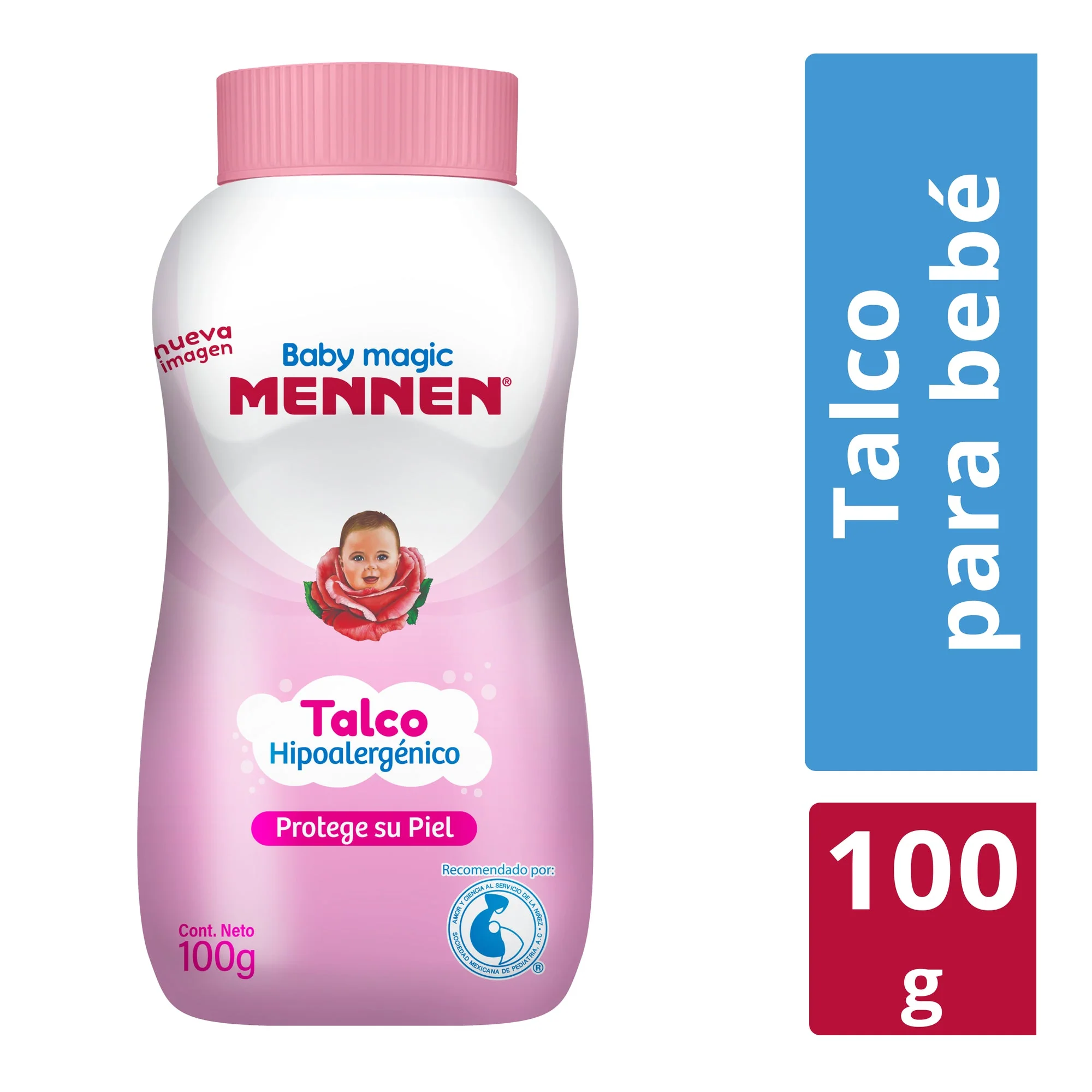 Consiente la delicada piel de tu bebé y dale el trato que se merece con el Talco para Bebés Baby Magic Rosa de Mennen, que tiene para ti una presentación de 100 gramos, la cual podrás llevar en cualquier pañalera mientras vas de paseo y utilizarla en caso de realizar cambio de pañal. Su fórmula está hecha a base de ingredientes cuidadosamente seleccionados para mantener la zona del pañal libre de rozaduras, debido a que deja la humedad fuera y previene las irritaciones derivadas de la fricción que genera con la piel. Utilízalo diariamente y sorpréndete por sus efectos de larga duración, también, podrás utilizar el talco para mantenerlo cómodo y relajado, pues al aplicarlo en toda su piel le proporcionará frescura.
